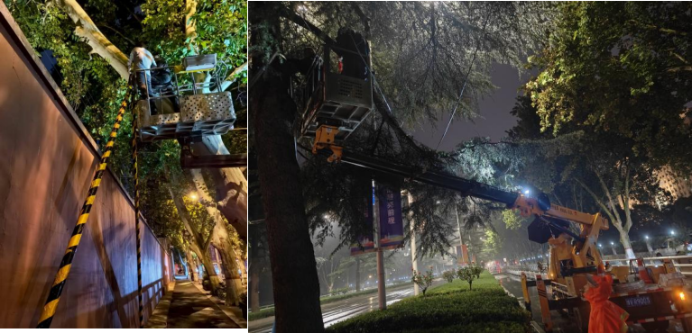 经过工作人员的连续奋战,截至9月11日凌晨1点,12处高危树木的加固工作已全部完成。为持续保障树木安全,中心还建立动态监测机制,安排专人每 2 小时巡查上报树木稳固情况,一旦发现险情便即刻启动应急预案,及时调整松动支撑,确保树木始终处于安全状态。