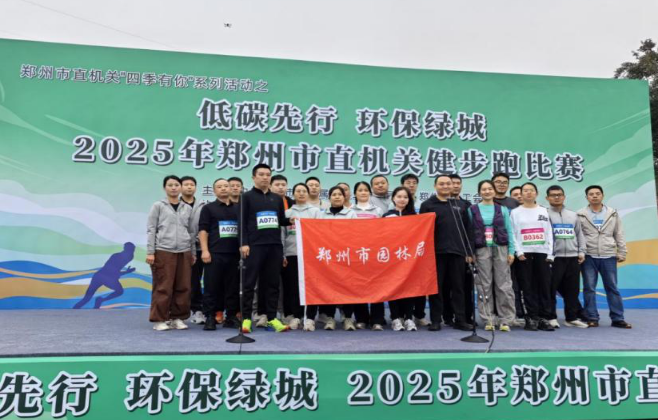 为进一步丰富干部职工文化体育生活,激活全民健身热情,凝聚干事创业合力,10 月 11 日上午,郑州市园林局选派运动健儿组成参赛队伍,在郑州树木园参与郑州市直机关“低碳先行 环保绿城”2025年健步跑比赛,以昂扬姿态展现园林人守护绿色、奋进向上的精神风貌。